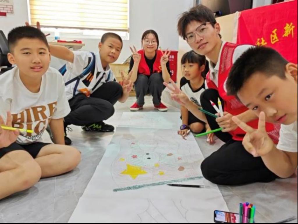童心向祖国,彩绘迎国庆。志愿者们组织社区小朋友们开展图案上色活动,准备了一幅幅富有意义的国庆主题图案,如天安门城楼、五星红旗、长城、和平鸽等,每一幅图案都承载着对祖国的深情厚谊与对未来的美好祝愿。小朋友们围在画布边上,手握画笔,眼中闪烁着对创作的热情与对祖国的热爱。在他们的笔下,天安门城楼巍峨壮丽,五星红旗迎风飘扬,长城蜿蜒壮观,和平鸽展翅飞翔,每一笔都饱含着对祖国的深情与对和平的向往。