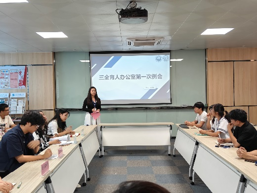 最后三全育人办公室主任方凯强对近期工作做出总结,对新学期办公室主要工作做出明确部署,鼓舞新老干事积极投身于本职工作,并向新老干事致以美好祝愿!