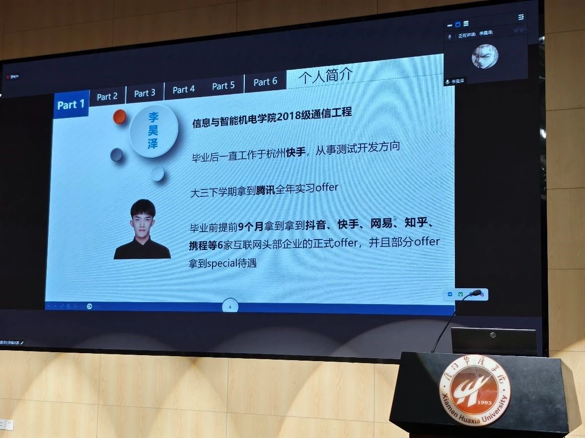 李昊泽学长分享在选择互联网软件领域的大学成长经历,将其分为四个关键阶段。首先,在选择与迷茫阶段,他明确了从校园走向社会的目标,考虑到IT行业对年龄敏感,决定直接就业,尽早确立目标,从终点反推起点,明确具体步骤。其次,在学习与积淀阶段,利用线上资源和书籍系统学习专业,每天至少投入两小时高质量学习,积极参与专业技能竞赛。第三,在就业冲刺阶段,从大二下学期开始准备简历,积极利用寒暑假时间到字节跳动和腾讯大厂实习;在不断积累实战经验之后入职快手公司工作。最后,在职业生涯发展阶段,他建议实习生要迅速融入新环境,积极对自身状态提出改进的方式方法,克服埋头工作的倾向,学会分解任务,寻找前人经验。
