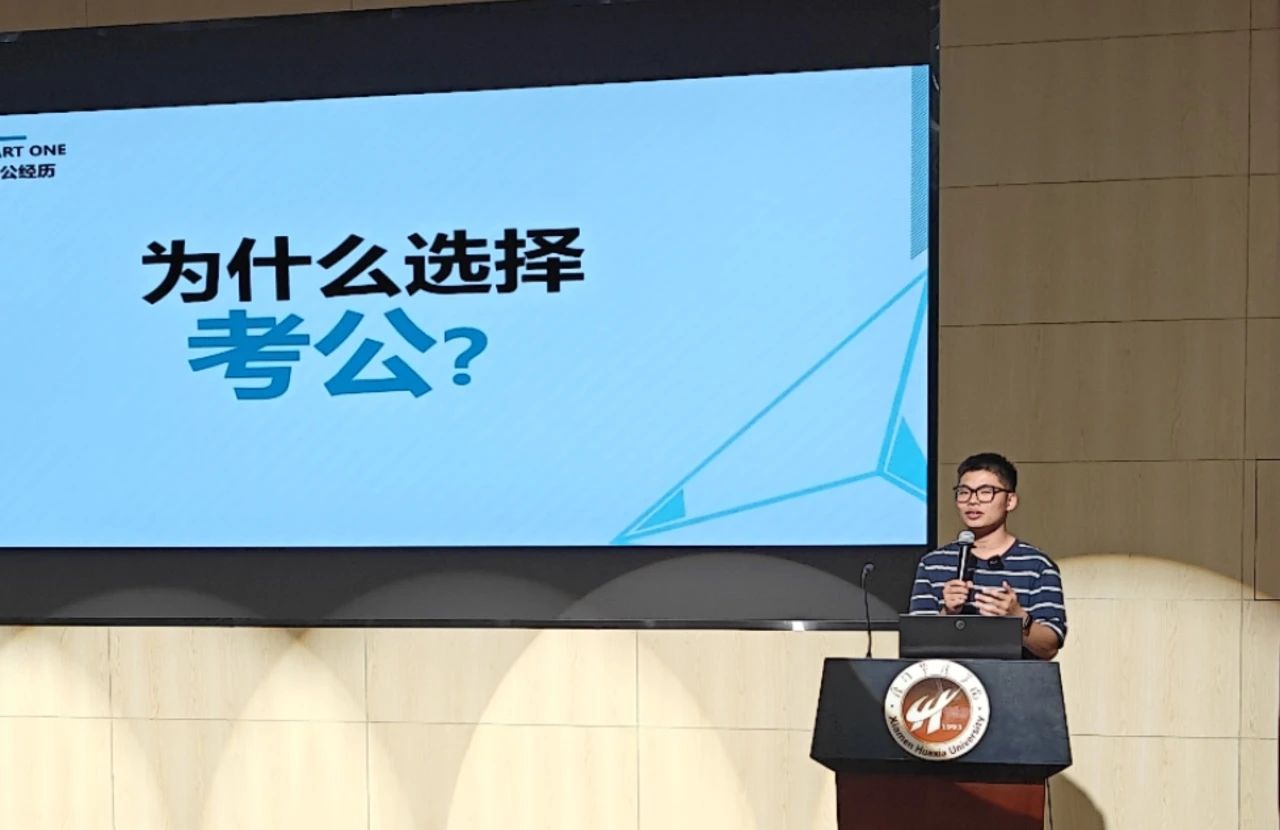 韩东和学长分享了个人从校园到职场的经历与思考,大一开始职业规划,大四最终确定考公。他详细介绍了公务员考试类型及备考策略,并强调保持良好心态的重要性。在充满活力的老员工活中,可以通过社团活动培养沟通与团队合作能力,在学术研究中提升自主学习力,同时重视办公软件技能和人际关系网络建立。作为党员,更要倡导知行合一,鼓励珍惜大学时光,多参加公益类活动,展现党员担当。最后,他激励大家在追求公务员梦想的路上坚定决心,保持恒心与毅力,勇敢追梦。