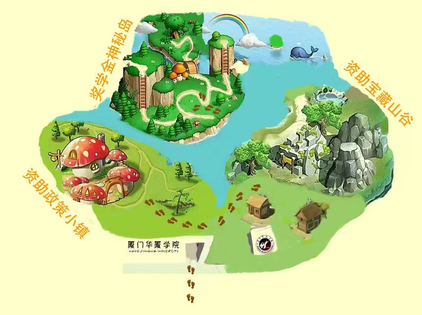 开场后每位同学将收到一张冒险地图,用于记录冒险历程。参与者将有三分钟的时间速记“资助政策森林”,“奖学金神秘岛”关卡相关题库,后续将在各个关卡进行提问,各提问7个问题,印章数上限5个,各容错2个;还有机会在“助学宝藏山谷”关卡完成任务获得印章1个。