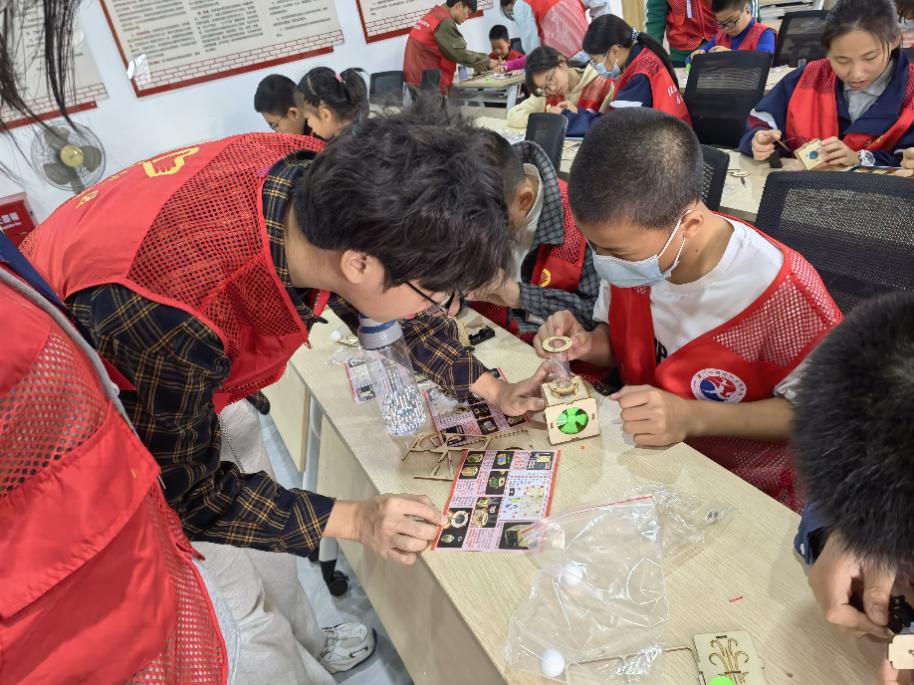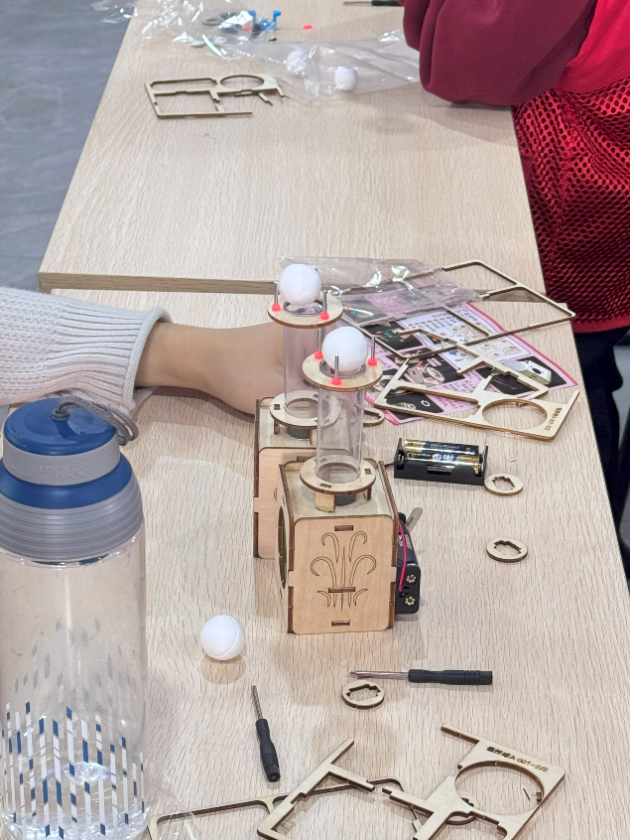 最后志愿者们带领社区小朋友们踏入神奇的科学世界,探索空气动力学的奥秘。活动现场,志愿者们耐心地向小朋友们讲解空气悬浮球的原理,通过简单易懂的语言和生动有趣的演示,让孩子们对伯努利原理有了初步的认识。随后,在志愿者的悉心指导下,小朋友们纷纷动手操作,组装器材、调试气流,一个个专注认真。当看到小球在气流的作用下成功悬浮在空中,孩子们的脸上洋溢着兴奋与自豪的笑容,欢呼声此起彼伏。