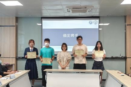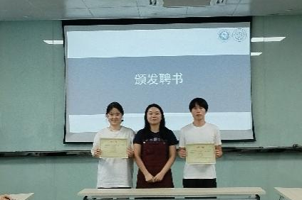 随后,大会进入换届聘任环节。经过前期的精心筹备、面试选拔及公示,新一届三全育人办公室主要干部正式产生。会上,三位老师为各位新任干部颁发了聘书。新任主任庄晶莹在发言中表达了对老师和上一届干部的感谢,并承诺将以高度的责任感和使命感投入工作。她强调,未来将注重工作方法创新,深化部门协作,优化资源配置,切实提升三全育人工作的实效性和品质。