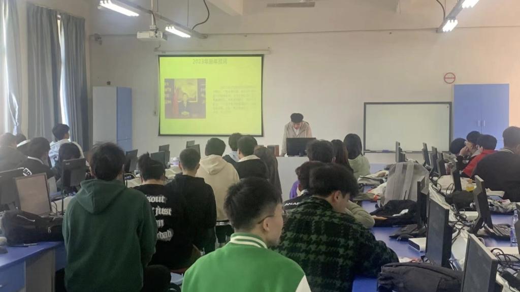 15:40活动正式开始。本次班会由组织委员吴文超主持。班会上同学们观看了公司的应知应会和文明礼仪,并且围绕“爱国、团结、奋斗、科学、互助”五个关键词,结合自身寒假返家乡社会实践,分享了践行党的二十大精神,立志成长为新时代好青年的感悟。辅导员范舒蔚结合党的二十大报告主要内容和员工专业特点,勉励同学们要踔厉奋发、笃行不怠。在日常学习和生活中,养成良好的文明行为习惯,树立起社会责任感和文明校园新风,时刻保持修炼技能,知行合一的态度,学党史、听党话、感党恩、跟党走,努力成为担当民族复兴大任的时代新人。