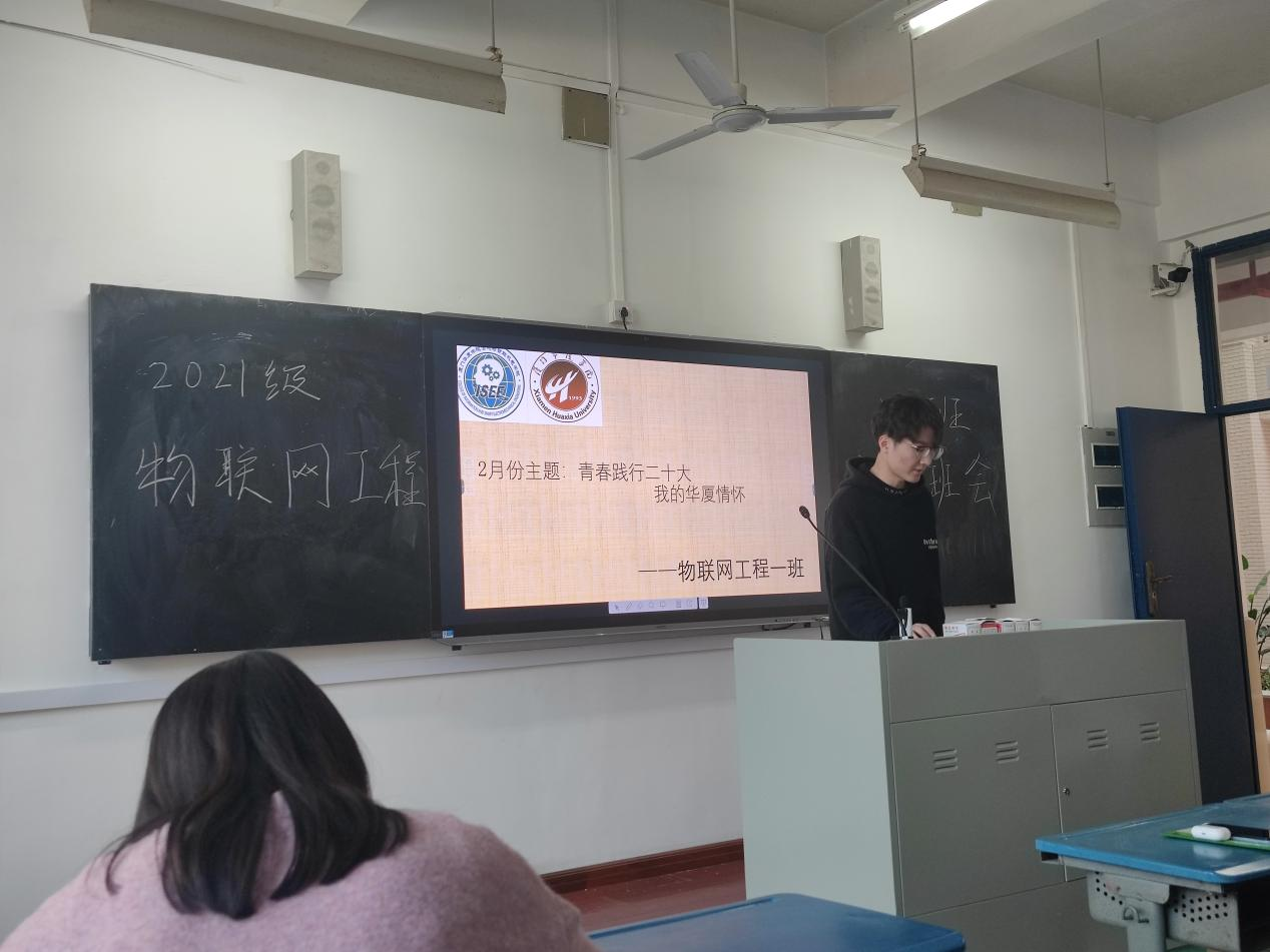 2023年2月22日,2021级物联网工程1班在致远301举行《青春践行二十大,我的华厦情怀》主题班会,这次班会响应公司教学计划安排,主要提升新学期同学们的政治意识,以及爱校情怀的培养。