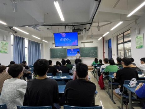班会中,团支书程海涛以生动朴实的语言,从两个主题展开内容。