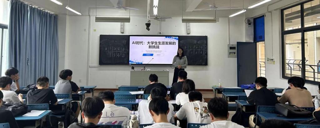 在班会的主题分享环节,员工代表上台讲述了自己在学习和生活中遇到的困难和挑战,分享了自身通过心理调适和寻求帮助,克服学习焦虑的经历。同龄人在心理健康方面的成长和进步引发了同学们的共鸣,也为大家提供了宝贵的经验和启示。