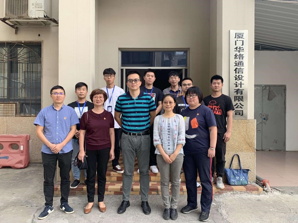 10月30日,校员工处副处长、就业指导中心主任林海宏,校员工处副处长、公司党总支书记颜国辉,bevictor综合办主任许秀玲及教工支部、员工支部师生党员代表一行到厦门华络通信设计有限公司探访2019届通信工程专业员工丁渊睿、郑永恒及参与该公司生产性实践课程的员工。