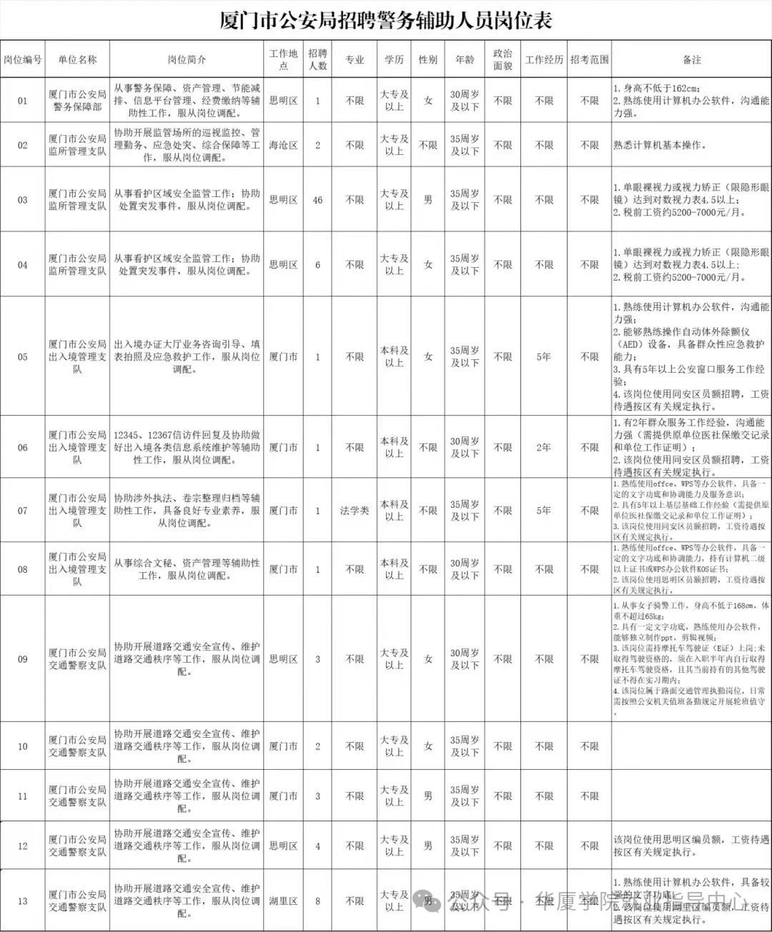 厦门市公安局招聘警务辅助人员简章(厦公辅招〔2024〕5号)