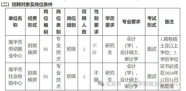 五、南平市人力资源和社会保障局直属事业单位公开招聘紧缺急需专业人员2名