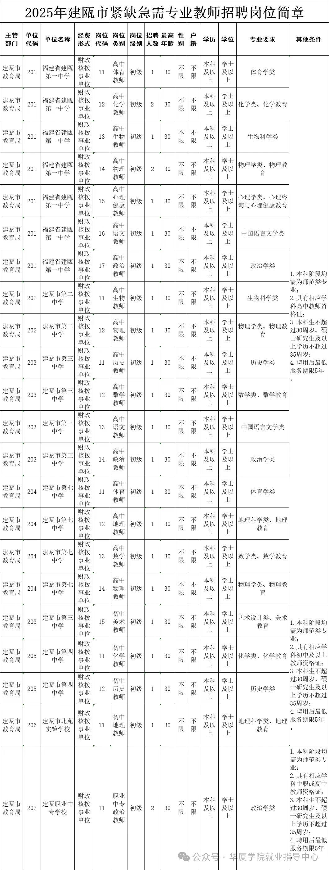 三、建瓯市公开招聘2025年紧缺急需专业教师25名