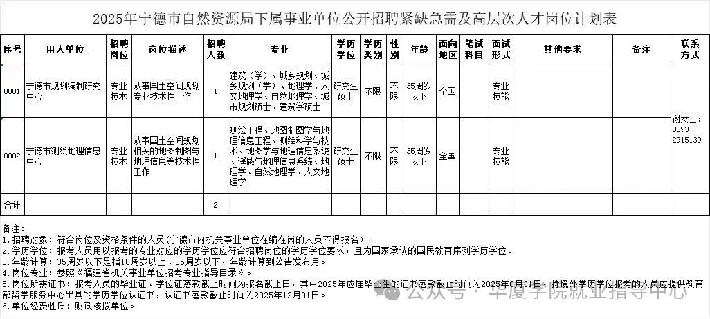 宁德市自然资源局关于2025年公开招聘紧缺急需及高层次人才的公告