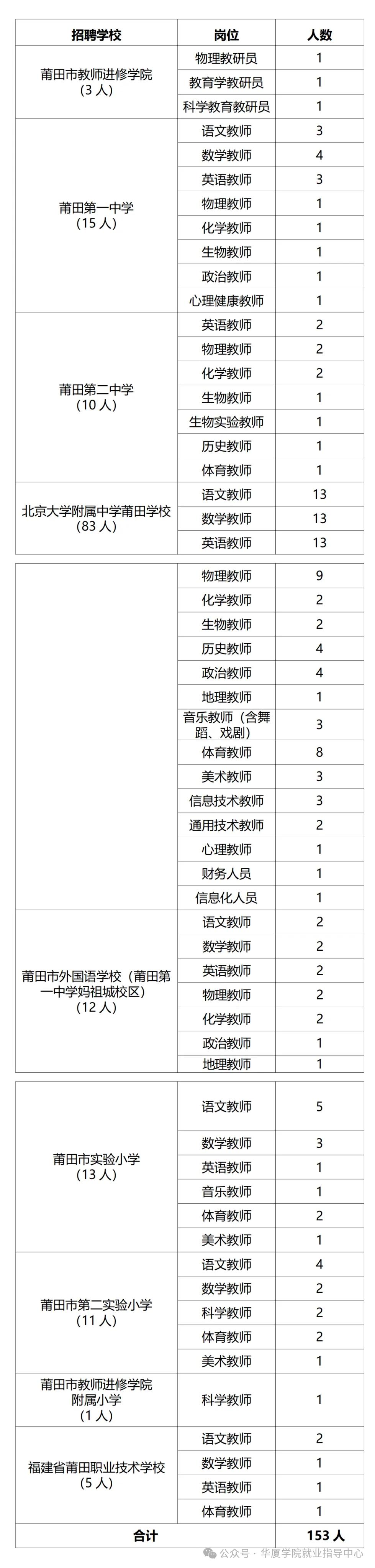 莆田市市直公司公开招聘2025年新任教师和工作人员153名