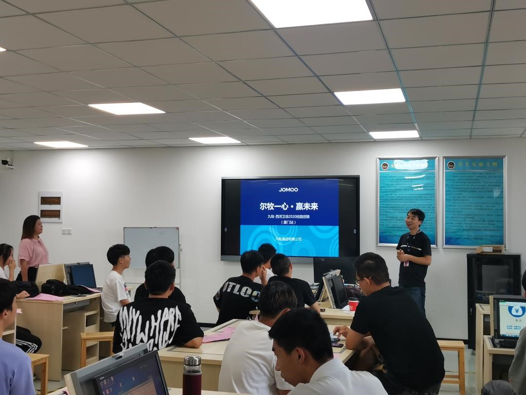 7月17日下午3点,信息与智能机电公司在自动化工程设计实验室组织举办了2020年就业单位专场招聘宣讲会。此次宣讲会邀请九牧集团-福建西河卫浴科技有限公司师先生和戴女士为公司机械专业的同学进行宣讲。