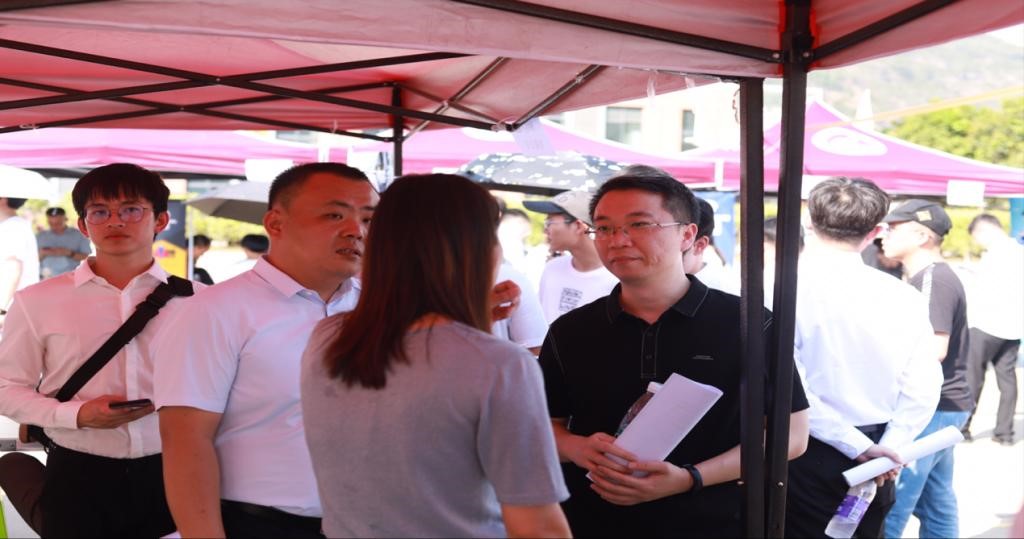 据了解,本次双选会共吸引了包括厦门海辰新能源科技有限公司、四三九九网络股份有限公司、厦门日华科技股份有限公司、通达(厦门)科技有限公司、九牧集团、厦门华电开关有限公司等40余家上市公司、行业高科技企业前来参会。参会企业共提供了一千多个工作岗位,覆盖bevictor所有专业,岗位有网络优化工程师、软/硬件开发工程师、C++/Java工程师、设计工程师、视觉工程师等,据统计,此次招聘会有80%岗位实习薪资超过4000元/月,40%岗位实习薪资超过5000元/月,部分企业甚至开出6500元/月的高薪,而且企业将会为员工额外提供商业意外险。bevictor常务副经理陈明明教授、蔡志猛副经理、周海波副经理带领bevictor部分老师来到双选会现场,与企业进行深入的沟通交流,并与企业负责人一起合影留念。